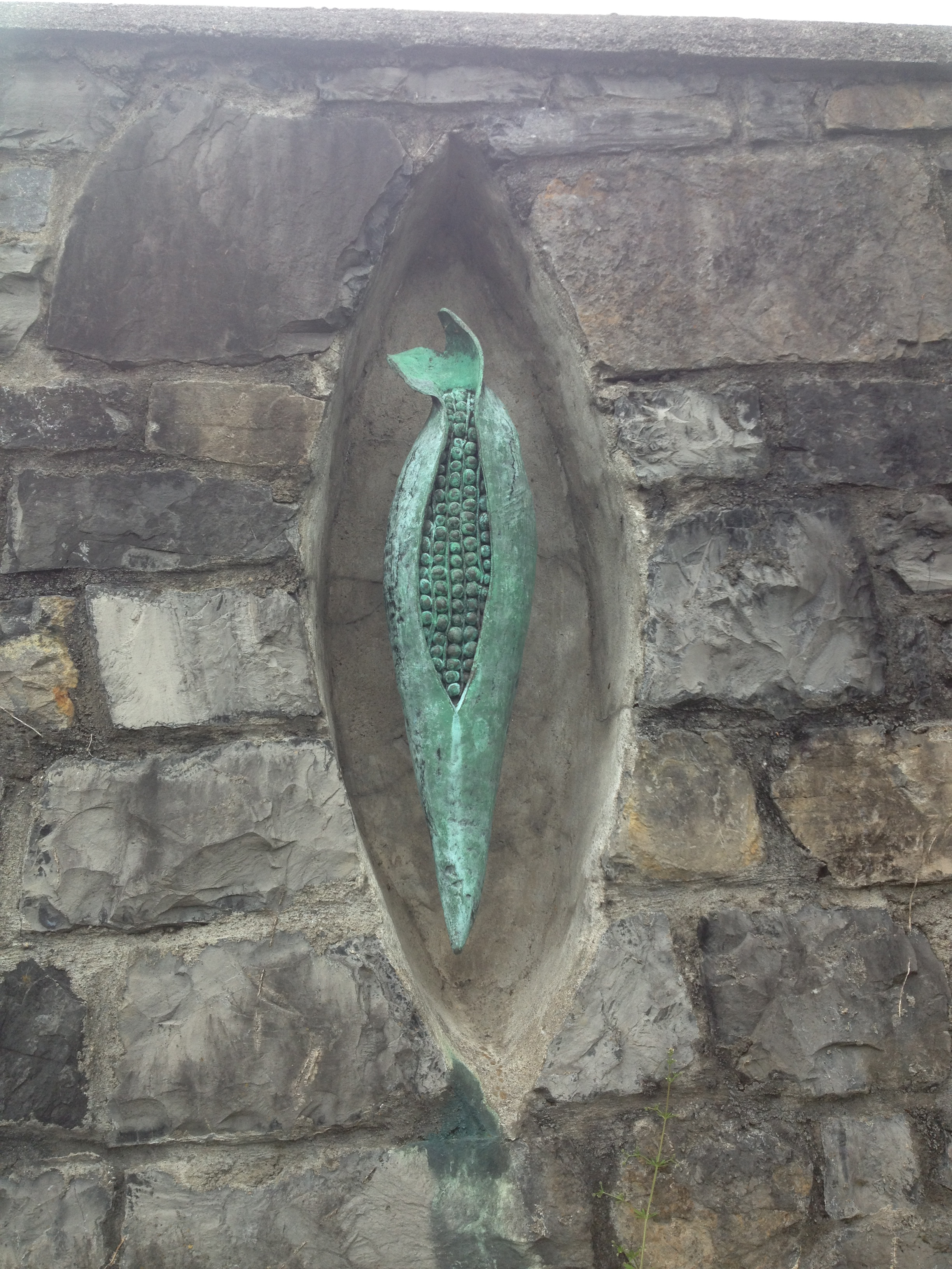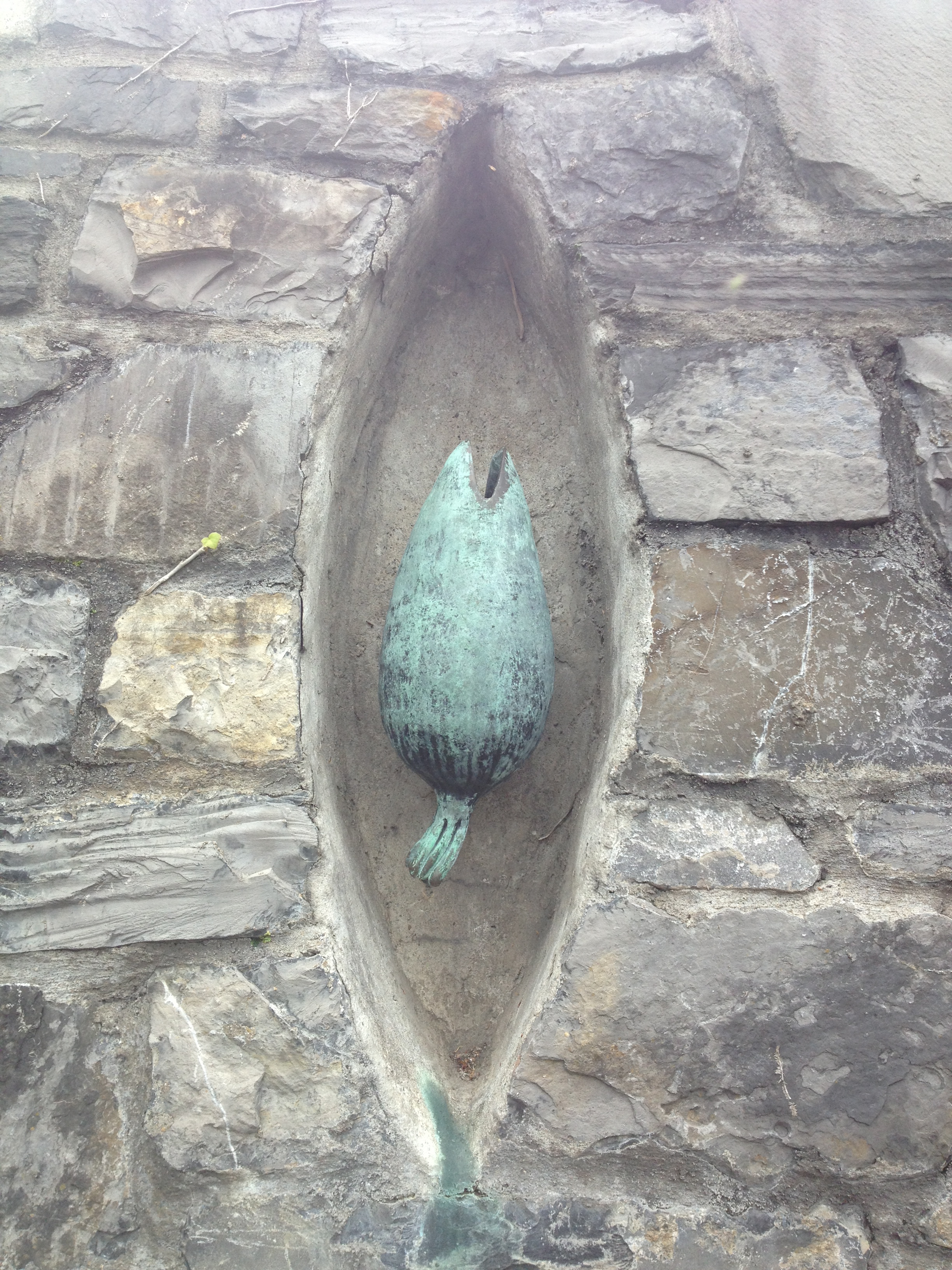 However this weekend was a bit different. After Bloom, we all headed to the Porterhouse North for some yummy food – hot chicken wings, nachos, tobacco onion rings (don’t even ask) and Crabbies Alcoholic Ginger Beer! YUM. My best friend and her little 2 month old called into my parents that night and we sat chatting and catching up and drinking copious amounts of tea and eating a fair bit of chocolate. The following morning, Sunday, myself and my sister took Bug to Blessington Basin Park. I wasn’t sure about it at first, fearing gangs of drunk (or worse) youths just waiting to cause trouble. But no. It was beautiful. And peaceful. The flowers and trees were all in bloom, the football courts were full with young people playing, who stopped when we were walking past with the little man so that he wouldn’t get frightened if the ball hit the rails, the playground was full of children from all places happily playing together, whilst the adults caught up with each other about whatever was important. There was gentle banter with passers by about dogs and weather, and when we went into the basin itself, a little boy offered mine a slice of his bread to feed the ducks. We paid that forward by giving half the slice to a little toddler out walking with his dad. We admired the old black and white beamed house beside the gates, as I remembered going to school with a girl who used to live there. After pausing to look at some wonderful art along the walls, we headed for home and met an old man on a bench with the tiniest dog in the world – Coco – I think he said her name was. She hopped and pipped about and we played with her a while. Picking some bluebells to bring home to nana we stopped for an ice cream and then returned back to the house to pack up. Lunch al fresco in my sisters house – next door to my mams -finished off our weekend. It was a weekend of the Dublin I remembered from old, and I liked it a lot.